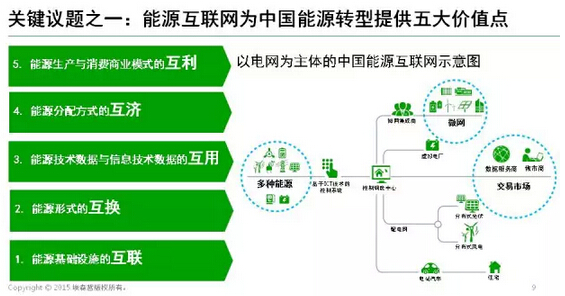 第一,能源基礎設施的“互聯”。通過電網或通過電動汽車,從上游的油氣和發電到終端消費者,把每個企業、每個商戶、每個居民用戶連接起來。