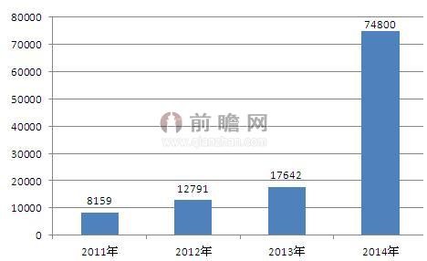 圖表1:2011-2014年中國新能源汽車動力鋰電池市場規模(單位:萬元)