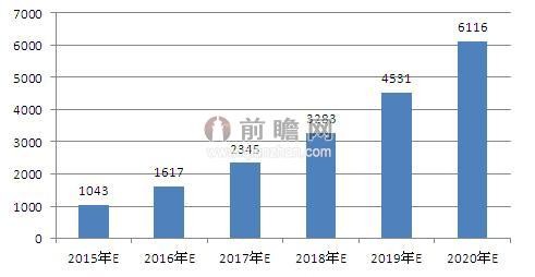 前瞻產業研究院綜合未來行業下游發展情況,國家相關產業政策的影響,結合鋰電池市場規模的歷史數據,采用多項式擬合預測2015-2020年中國鋰電池的市場規模。到2017年鋰電池行業市場將達到2300億元左右,2020年行業市場規模達到6000億元左右。