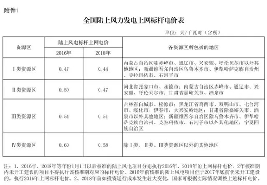 陸上風電光伏發電上網標桿電價下調