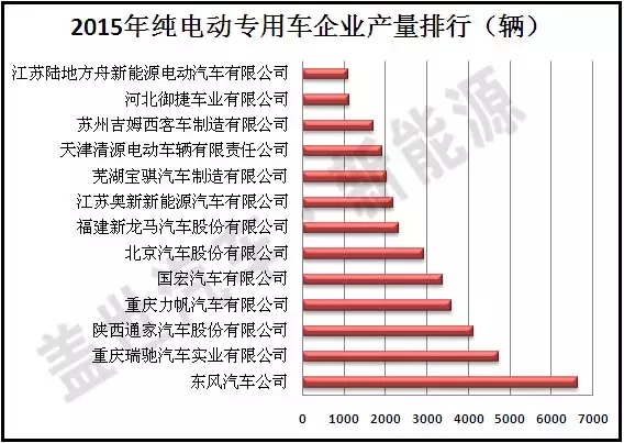 根據(jù)統(tǒng)計,2015年有13家純電動專用車生產(chǎn)企業(yè)全年產(chǎn)量超過1000輛。