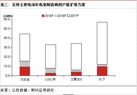 我們預(yù)計整個電動汽車電池市場因過快的產(chǎn)能擴張在2016年將面臨供過于求的局面,但鎳錳鈷酸鋰電池供應(yīng)由于其高科技壁壘和在客車與商用車之間的有磷酸鐵鋰向鎳鈷錳酸鋰電池升級而繼續(xù)短缺。