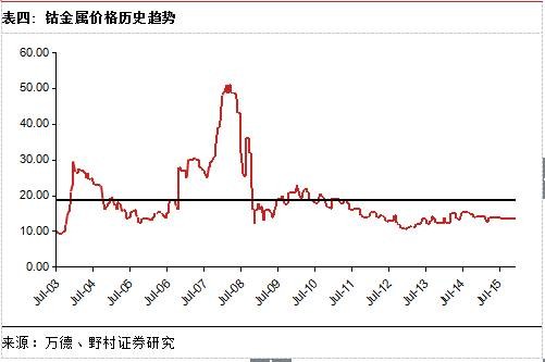 我們觀察到鈷金屬價格目前處于歷史低位。在由磷酸鐵鋰向NMC三元電池升級的過程中,將產(chǎn)生對鈷金屬的大量需求。由于鈷屬于稀有金屬,絕大部分儲存在政局不穩(wěn)的民主剛果,我們認為鈷價格在未來進入上升通道,重復(fù)2006到2008年間由智能手機和筆記本電腦電池需求帶動的價格上浮。