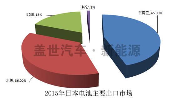 2015年,日本進口的電池主要由東南亞、北美、歐洲的國家和地區生產。