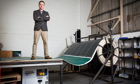 John Hingley的背包里藏著一種解決方案:一卷可以展開的輕薄太陽能面板,可隨時為手機、相機、電腦等個人電子產(chǎn)品供應足夠電力。即使是在偏遠山區(qū),這一裝置也能隨時供電。John Hingley也做出了更大膽的設(shè)想——開發(fā)出了更大版本。