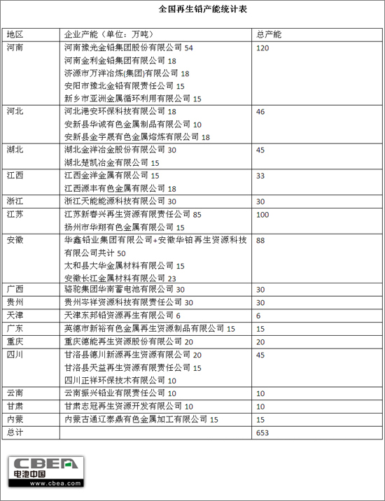 據(jù)上述企業(yè)統(tǒng)計,目前我國廢鉛酸蓄電池的資源量只有340萬噸左右,與600多萬噸的產(chǎn)能相比,目前再生鉛企業(yè)的產(chǎn)能已過剩。