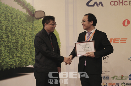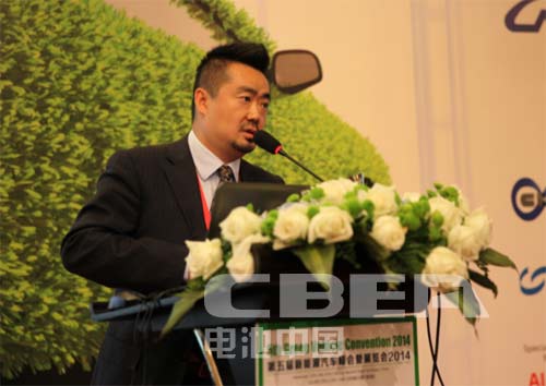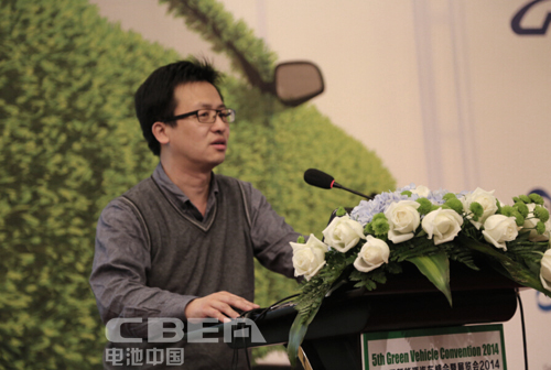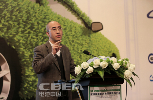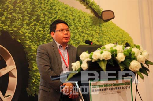 圖為國家863電動車重大專項動力電池測試中心主任王子冬作《圍繞電動車的商業模式開發動力電池系統》的主題演講