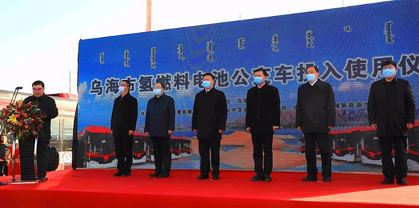 2021年2月初,內蒙古自治區烏海市氫燃料電池公交車投入使用儀式舉行。據了解,此次烏海投放的20輛氫燃料電池公交車,均來自廣東珠海的銀隆新能源股份有限公司。銀隆新能源氫燃料電池客車在西北的烏海“氫”裝上陣,也標志著氫燃料客車應用推廣再次駛入新的里程碑。