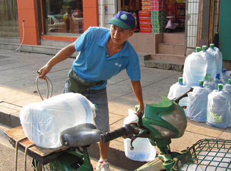 廣州禁電,受到影響的不只是快遞,一位踩電動車送水的工人表示,如果送水不可以踩電動車,“這個行業(yè)基本上就沒人干了”。一桶水19公斤,兩桶水就相當(dāng)于一個女孩子的體重,對于送水工來說,用電動車一次可以承載9-12桶,每一桶水能賺一元錢,如果用自行車一桶一桶送,“根本沒辦法賺錢”。